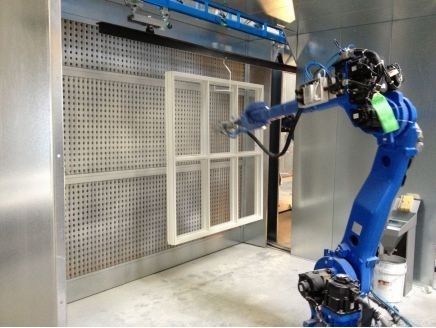 Das System ist das Ergebnis langjähriger Erfahrung und wurde im engen Dialog mit unseren Kunden aus der Fensterindustrie entwickelt. In unserem Testcenter haben wir eine Lösung aufgebaut, die aus einer vollautomatischen Lackieranlage mit Robotern und einem kompletten 3D-Scansystem für die Grundierung bzw. Deckbeschichtung besteht. Das System besteht weiterhin aus einem Power & Free-Förderer, Spritzkabinen und einem Trockenofen.