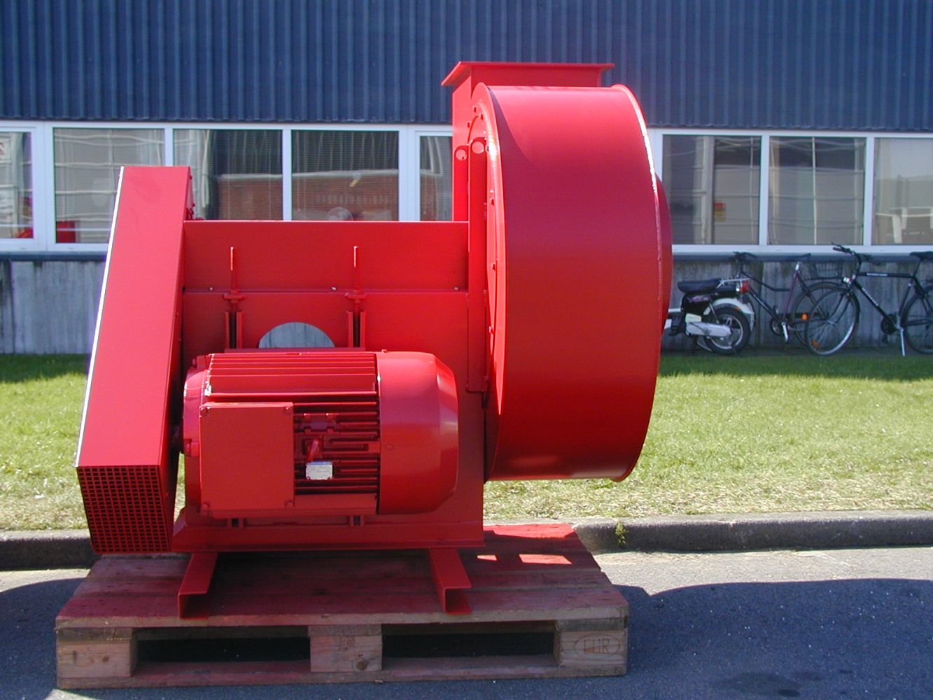 In this ventilator range, the ventilator wing in installed on an intermediate shaft. The intermediate shaft is connected to the engine shift by means of multi-track pulleys and V-belts. The rotation speed of the ventilator wing depends on the gearing, and it is adjusted to fit the wanted air volume (m3/h) and the wanted total pressure increase (Pa).