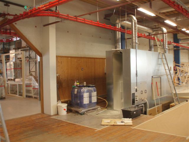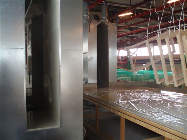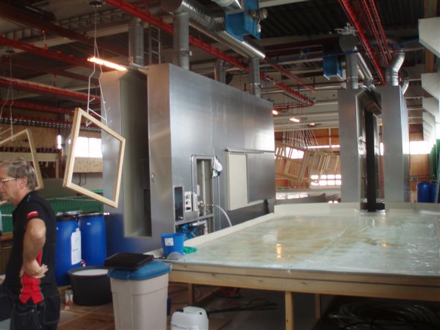 Flow-coat anlæg for imprægnering eller grundering af træelementer. Flow-coaten er udviklet i et samarbejde mellem førende vinduesproducenter og lak leverandører.