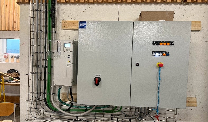 Komplet PLC-styring med ABB frekvensomformer og tryktransmitter for automatisk justering af luftmængde