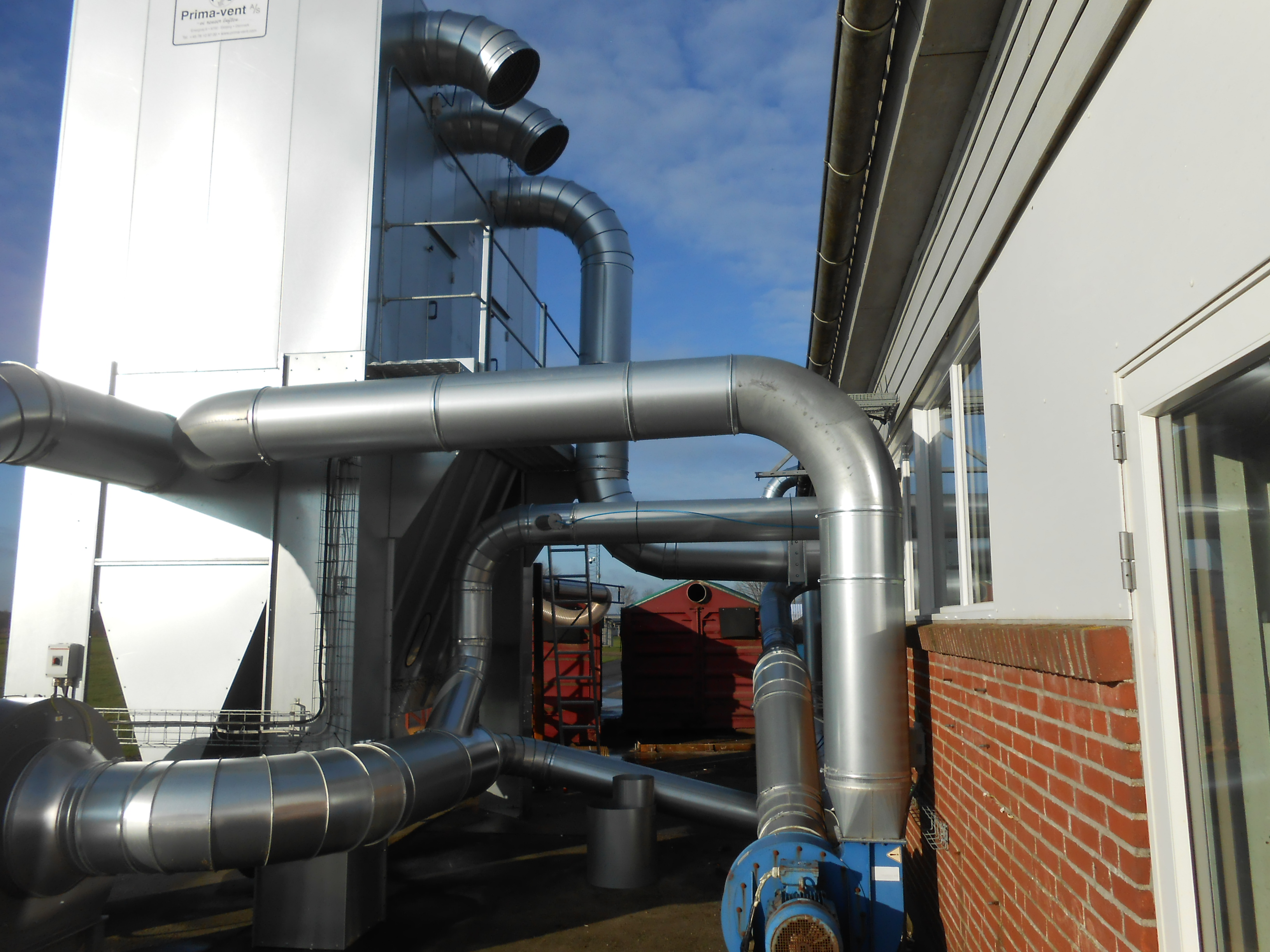 Spånsugningsanlæg, kapacitet 25.000m3/h, leveret til Renbæk Fængsel, Skærbæk.
