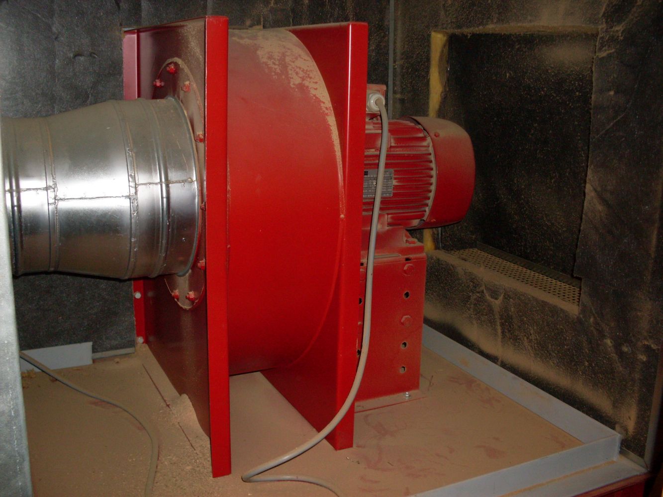 Formålet med transportventilatoren er at transportere luft-/materialeblandingen fra bearbejdningsmaskinen til et filtersystem, i hvilket materiale og luft skilles fra hinanden via filtrering. Ventilatoren er udført med et fuldsvejst stålhus, hvori ventilatorvingen er monteret.