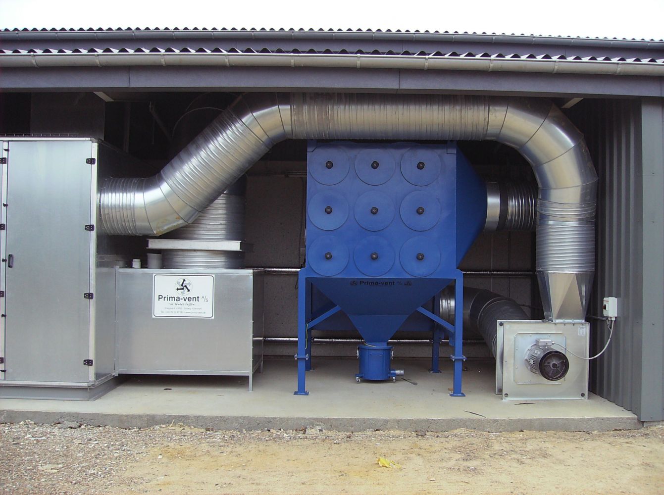 Filteret kan leveres med støvspand, sluse eller bigbag. Filteret kan leveres isoleret.