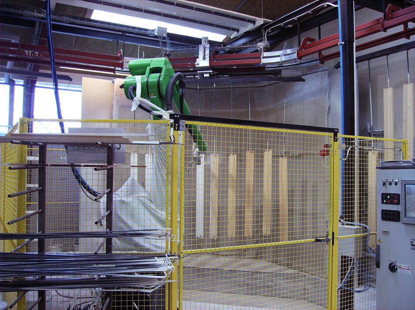 Wherever the suspension bar is to be accumulated, a turning unit for a 90 degree automatic turn is installed in order to allow the bar to move across the direction of travel. When accumulating, the pitch is usually at