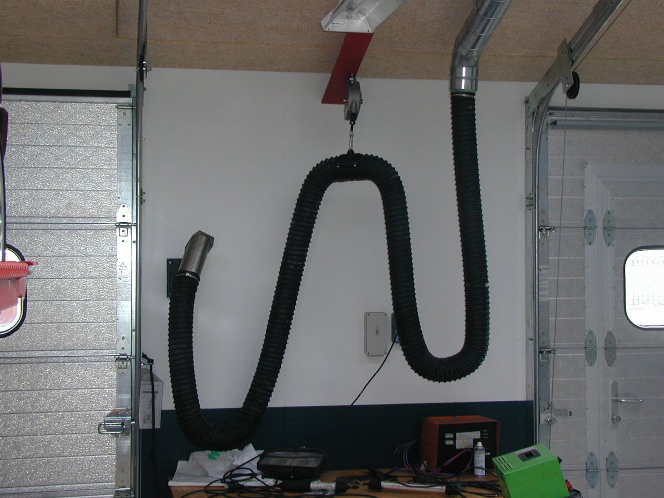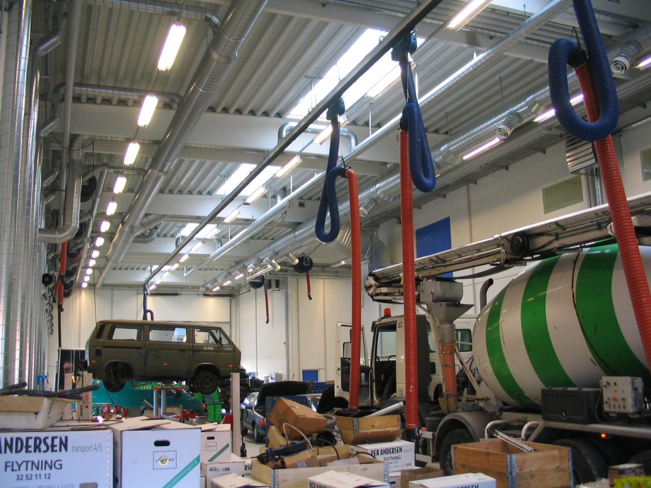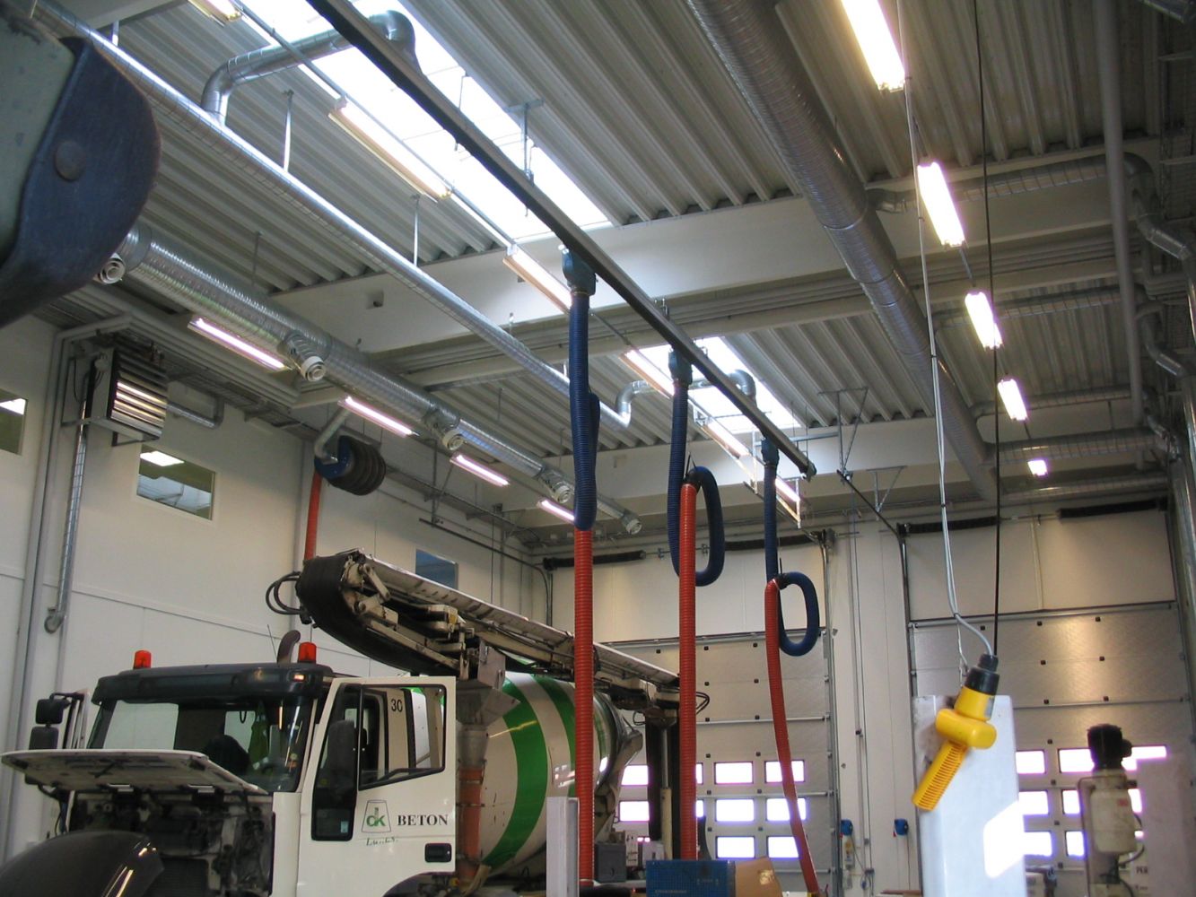 Fixed suction locations is a simple and cheap way of establishing an auto gas aspiration system in a car repair workshop featuring stationary work areas.