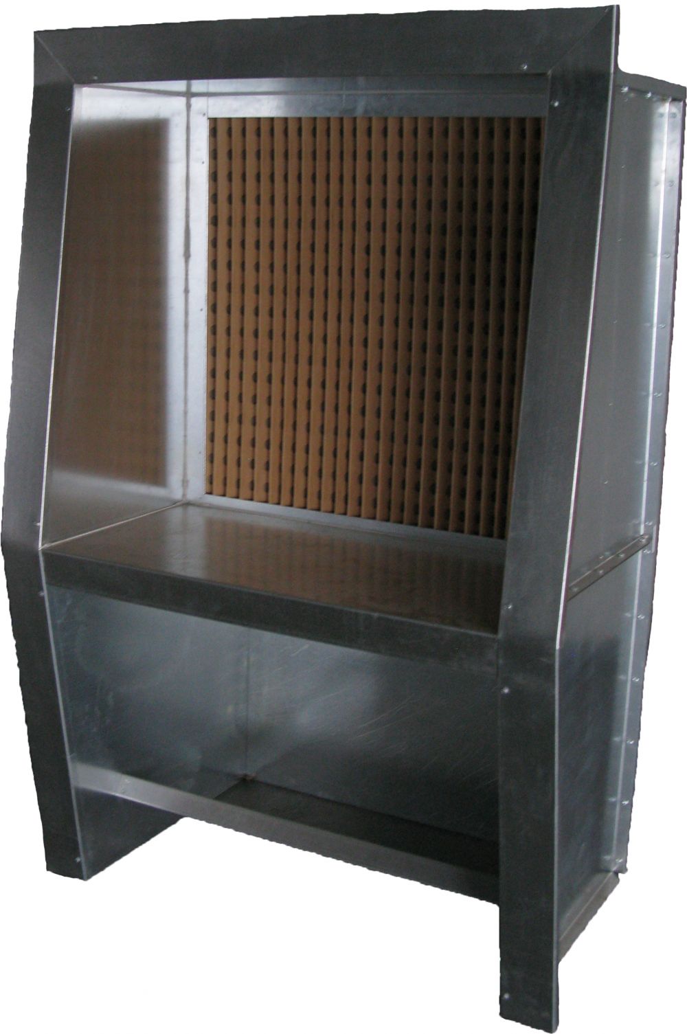 bordsprøjteboksen er en model specielt velegnet til små emner. Konstruktionen og tør-filtret giver højst opnåelig filtrerings- grad. Leveres i 4 forskellige standard- størrelser fra 800-1.500 mm i bredden..