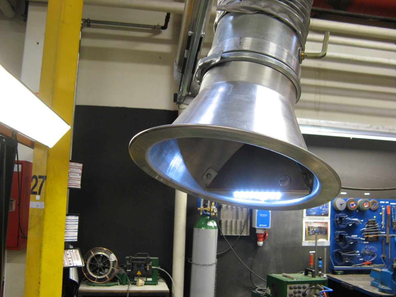 Over halvdelen af energiforbruget til svejseudsugning ligger ofte i modtrykket ved svejsearmen. Prima-vent's sugearm er optimeret til minimum af modtryk med udvendige bærearme og et trompet- formet hoved der giver mindst mulig tryktab.